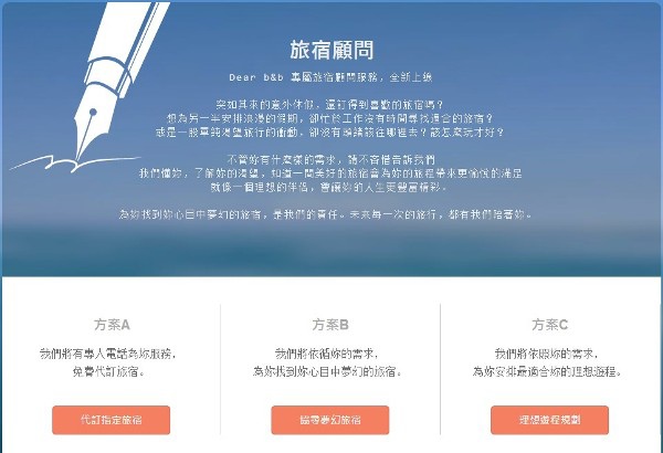 看起來三個方案是:代訂民宿、幫忙推薦適合的民宿,和規劃行程!!